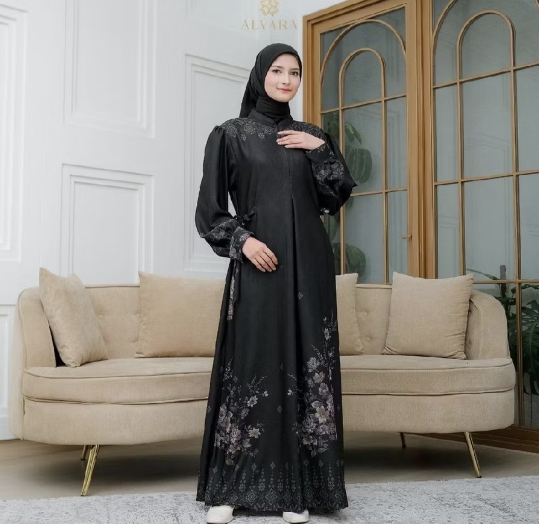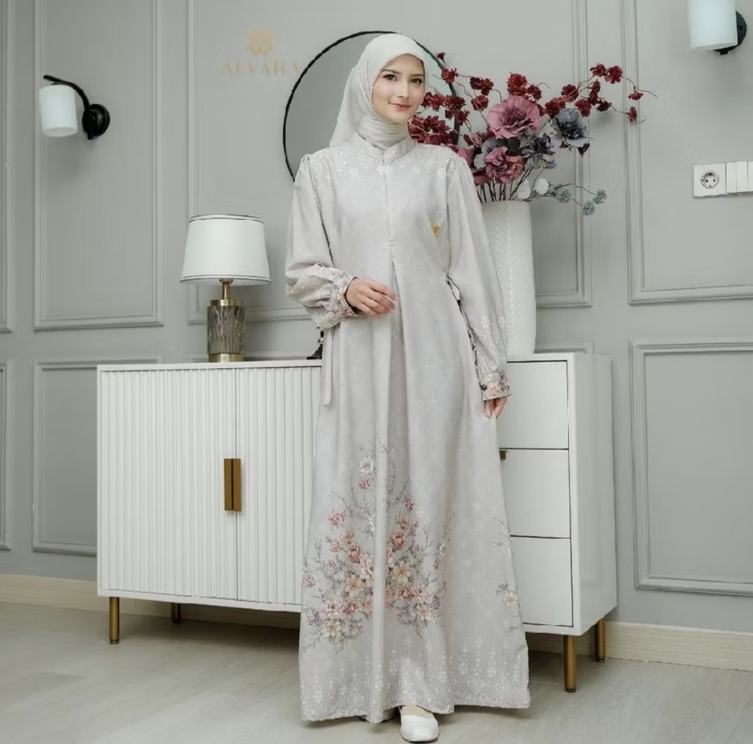 The latest patterned gamis from ALVARA features a captivating motif that enhances your elegant and fashionable look. Made from premium imported Snowy Silk, it’s soft, cool, and opaque.