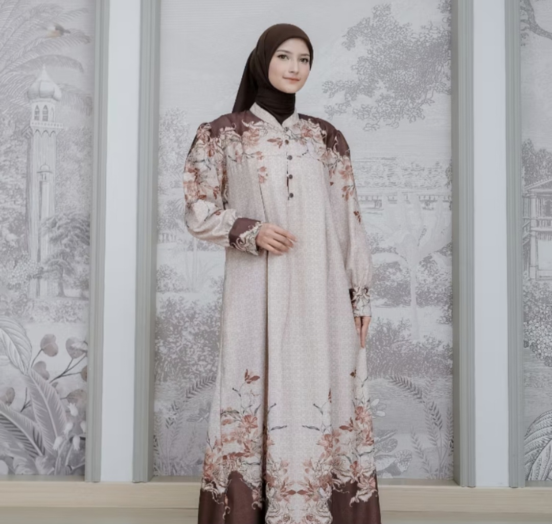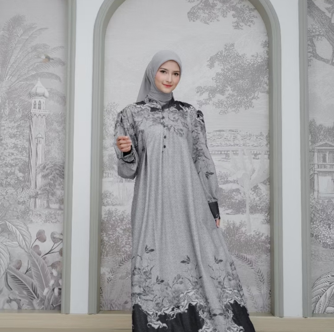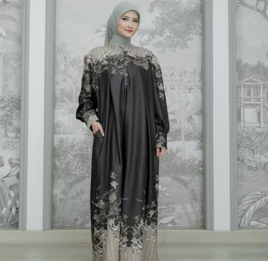 This gamis is ALVARA’s newest product, featuring a captivating motif that enhances elegance and fashion. Made from premium Snowy Silk, it’s lightweight, soft, cool, wrinkle-resistant, and non-transparent.