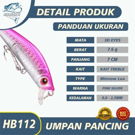 AQUASEA Feeding Fishing Bait Small Fish Bait HB112 Length 7cm/7.6g Treble Hooks Plastic Feeding Fishing Rod 3D Eyes