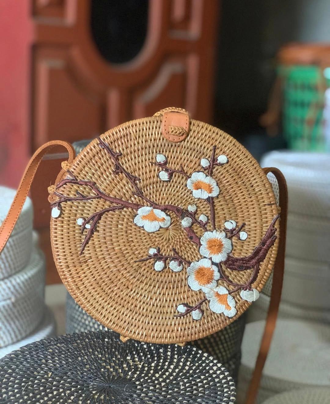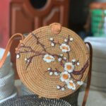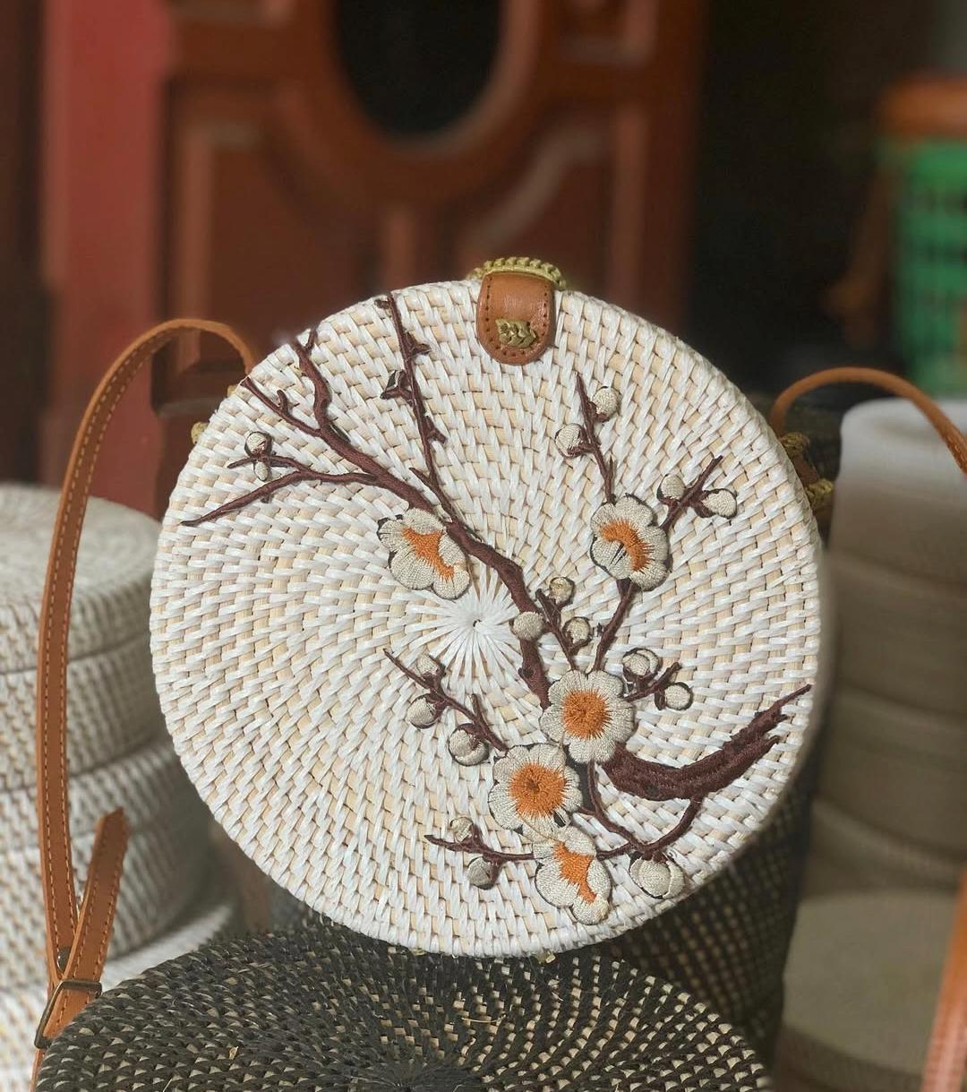 Add a touch of nature-inspired elegance to your outfit with this handcrafted round bag. Featuring a stunning arrangement of pressed leaves in shades, this piece combines artistry with functionality. The woven outer frame and leather strap create a rustic yet stylish look, perfect for casual outings, vacations, or special occasions.