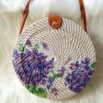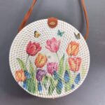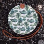 Add a touch of nature-inspired elegance to your outfit with this handcrafted round bag. Featuring a stunning arrangement of pressed leaves in shades, this piece combines artistry with functionality. The woven outer frame and leather strap create a rustic yet stylish look, perfect for casual outings, vacations, or special occasions.