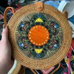 Add a touch of nature-inspired elegance to your outfit with this handcrafted round bag. Featuring a stunning arrangement of pressed leaves in shades, this piece combines artistry with functionality. The woven outer frame and leather strap create a rustic yet stylish look, perfect for casual outings, vacations, or special occasions.