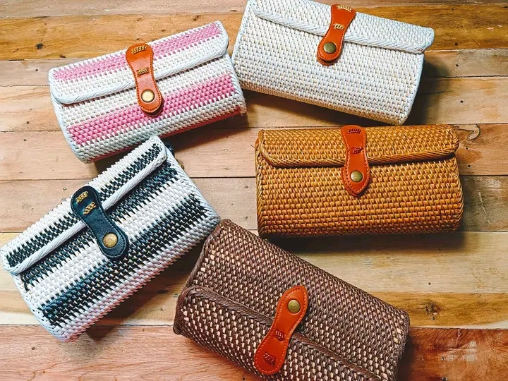 Add a touch of nature-inspired elegance to your outfit with this handcrafted clutch bag. Featuring a stunning arrangement of pressed leaves in shades, this piece combines artistry with functionality. The woven outer frame and leather strap create a rustic yet stylish look, perfect for casual outings, vacations, or special occasions.