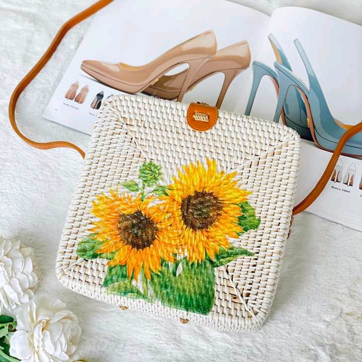 Add a touch of nature-inspired elegance to your outfit with this handcrafted square bag. Featuring a stunning arrangement of pressed leaves in shades, this piece combines artistry with functionality. The woven outer frame and leather strap create a rustic yet stylish look, perfect for casual outings, vacations, or special occasions.