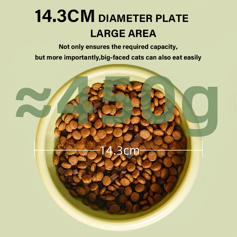 – Increased Capacity: Thanks to its spacious design and 14.3 cm in diameter, this cat food bowl holds enough food for your furry friend.