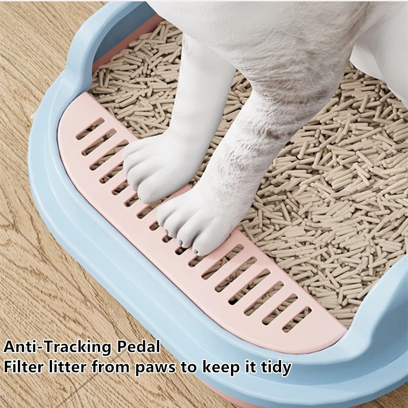 This semi-sealed cat litter box is designed with a fence according to the cat’s habit to prevent cat litter from falling outside when throwing sand.