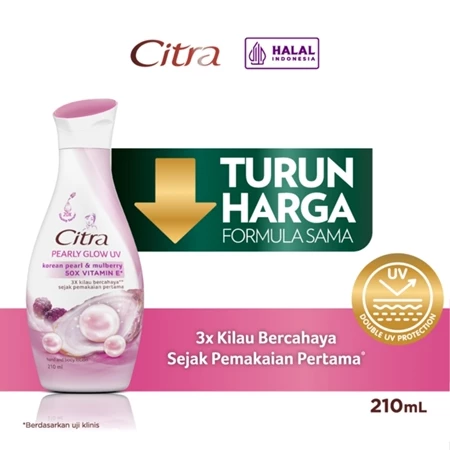� Hand & Body Lotion with brightening power, 3X radiant shine* from the first use. Citra Whitening Lotion is halal certified and registered with BPOM/Ministry of Health: NA18170103995