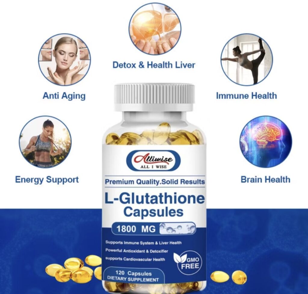 Alliwise Glutathione 1800mg for Skin Whitening Antioxidant Anti-Aging Dark Spots & Acne Scar Removal Vegan Skin Whitening Capsules