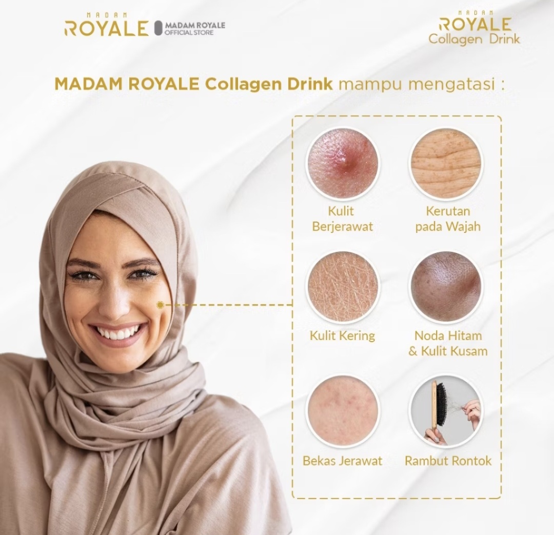 With 20,000mg of Fish Collagen, 1,500mg of L-Glutathione, Vitamin C, and over 20 fruit and vegetable extracts, Madam Royale Collagen Drink is highly effective in helping to brighten skin evenly, prevent premature aging, maintain healthy skin, and promote healthy hair and nails.