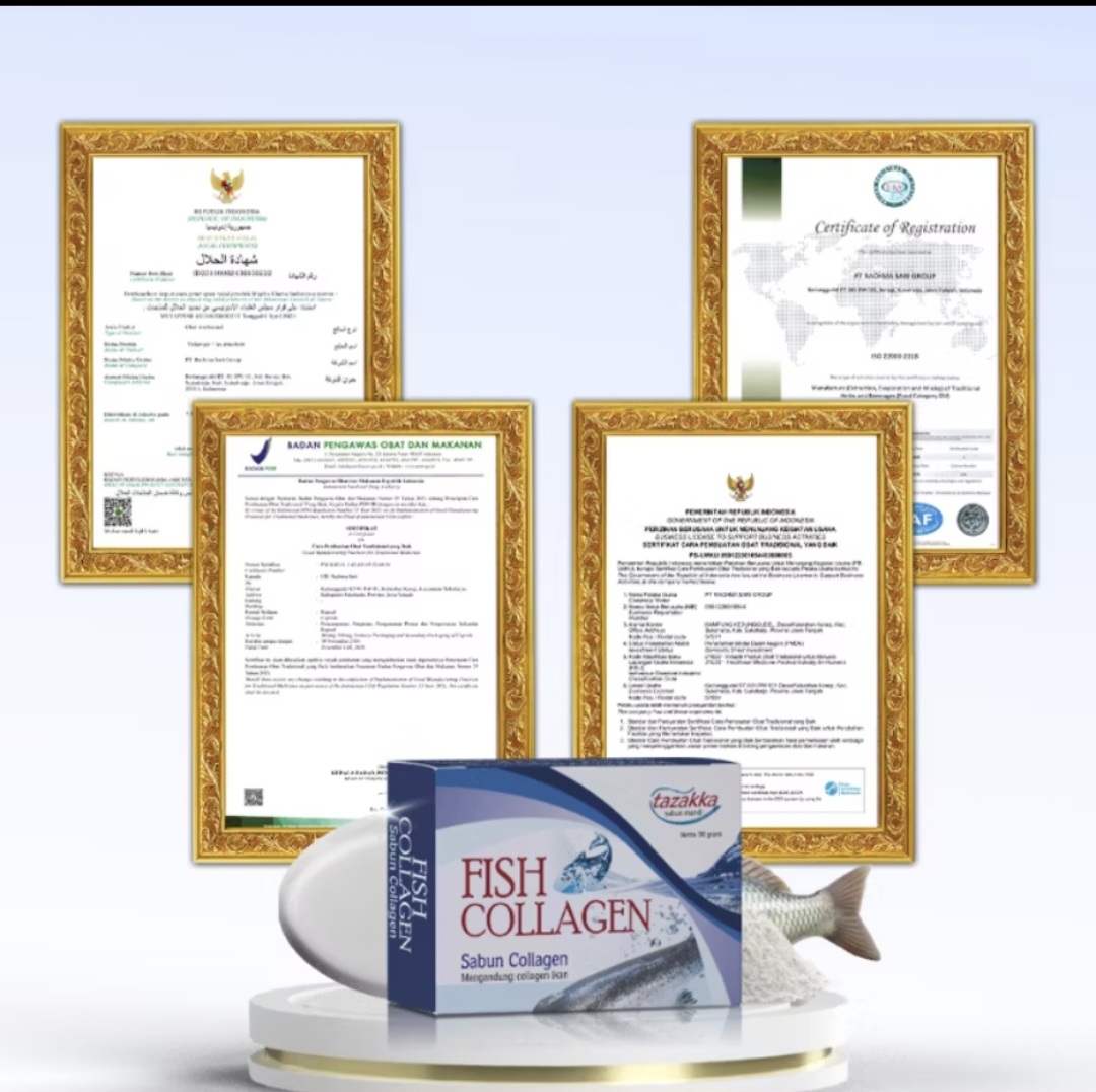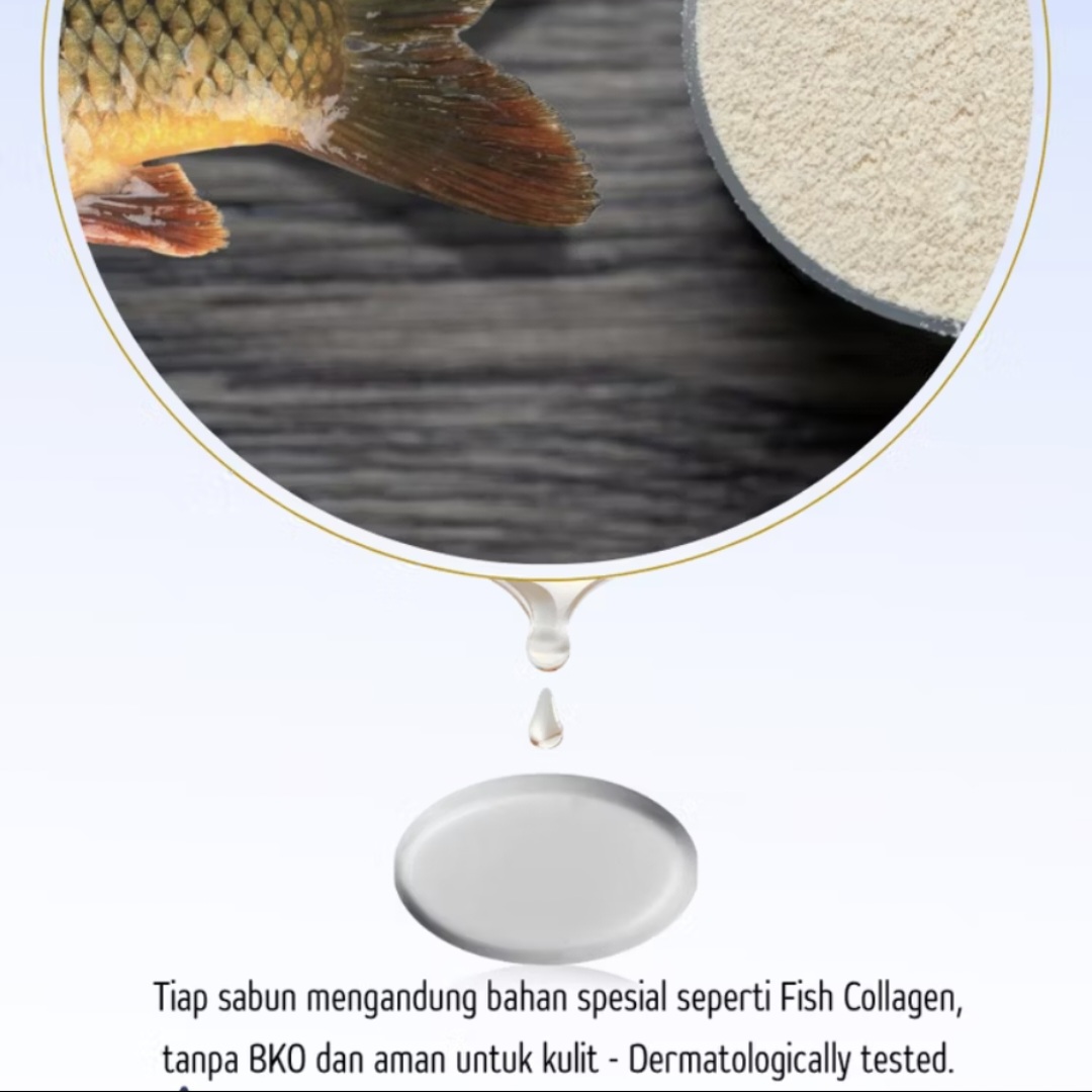 With the anti-aging properties of extra collagen content, Tazakka herbal Fish Collagen Soap can make your skin look brighter, naturally clean and youthful.
