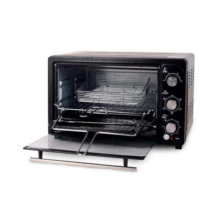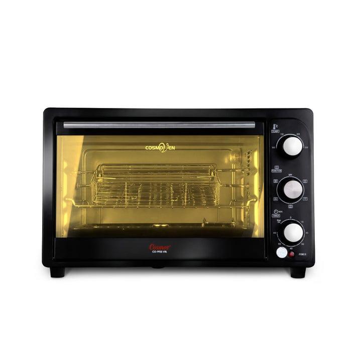 Cosmos Oven with a Large Capacity of 35 Liters for Baking Various Dishes Such as Cookies, Roast Chicken, etc. With Convection That Makes the Heat Evenly Distributed. Equipped with Bbq Rotisserie Pick (Automatic Rotating Grill) and Fish Grill. Stainless Steel Heating Element That Can Conduct Heat From All Directions. With 6 Heating Element Options. There are 3 Shelves (Tray, Grill & Crumb Tray So That the Oven is Easier to Clean). Electric Power 600w + 600w.