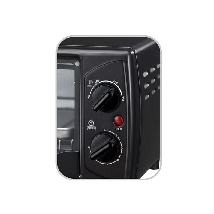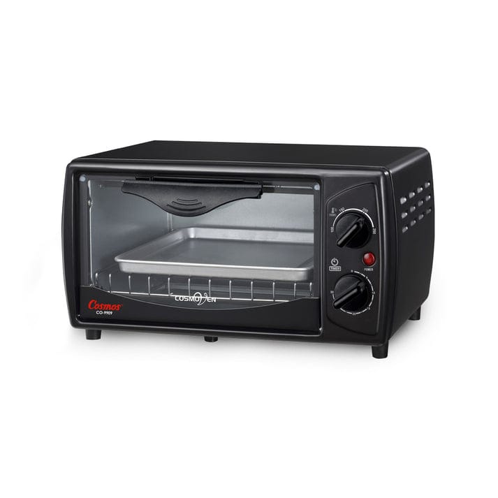 Cosmos oven with a capacity of 9 liters for baking various dishes such as cookies, cakes, etc. Low Watt (energy saving) only 175 w + 175 w. Stainless steel heating element that can conduct heat from all directions. Easy to clean and use, equipped with a crumb tray. There is also a timer.