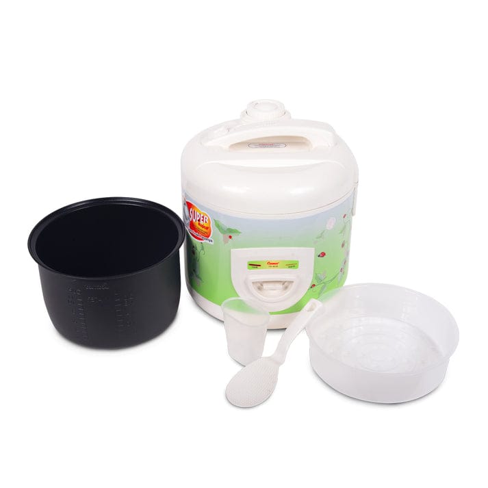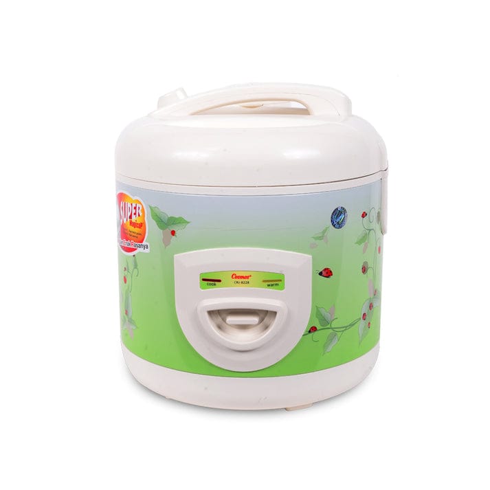 Cosmos Rice Cooker with nonstick coating innerpan, large capacity 2 liters. 3in1 function can be used for cooking, warming and steaming. Equipped with super tongs so that it can adjust the level of rice fluffiness. Premium Lotus series black color design.