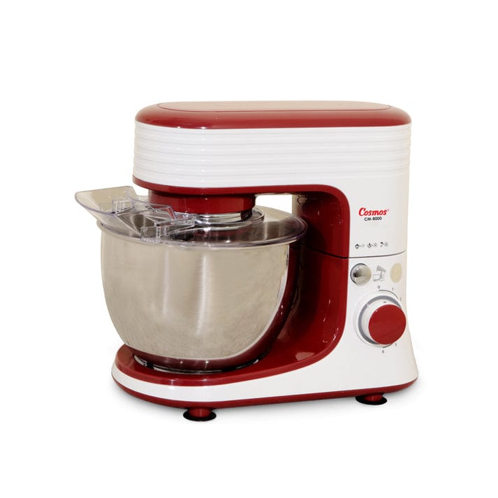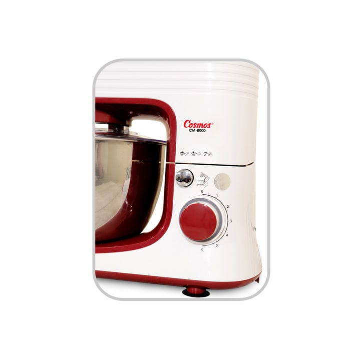 This Cosmos mixer with a large capacity of 4 liters can be used to make various kinds of dough such as cakes, pasta, mashed potatoes, etc. With metal gear (stronger and more durable mixer). Equipped with a bowl cover to make it easier to pour the dough. Whisk for light dough, eggs, cream, mayonnaise. Dough hook for heavy dough, pasta. Mixer blade for medium dough, cakes, minced meat, mashed potatoes. Spatula for stirring. With thermostat overheat protection, which is a motor protector that will cut off the electricity if the motor temperature has reached the specified limit to prevent the motor from burning, so it is safe to use. Also equipped with anti-slip so that the mixer sticks and does not move during the process so it is safe to use.