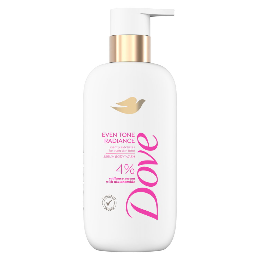 Dove Advanced Serum Body Wash Even Tone Radiance is formulated with face-grade 4% Radiance Serum with Niacinamide, which helps even out skin tone, reduce the appearance of dark areas, and strengthen the skin barrier. Niacinamide is known as a gentle yet effective brightening agent, combined with serum absorption technology within 20 seconds for more optimal results. This variant gives skin a brighter, smoother, and healthier appearance, with a gentle scent that is suitable for sensitive skin.