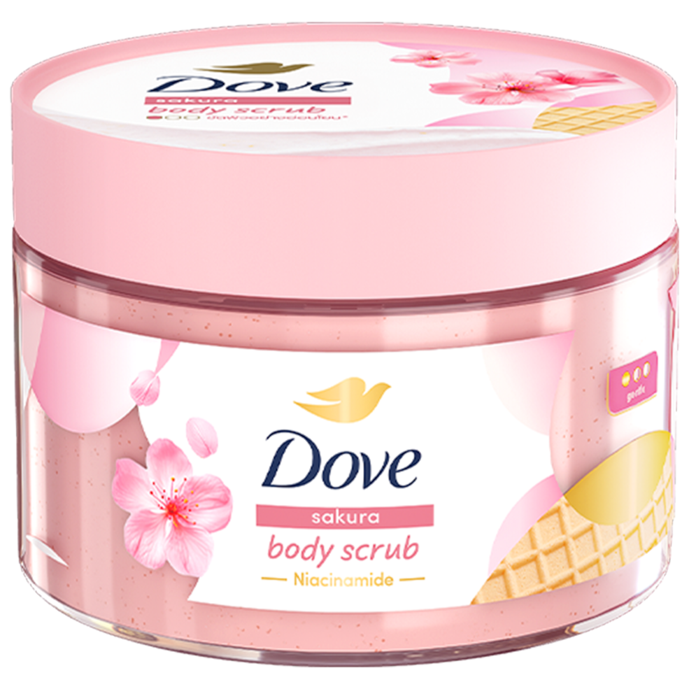 Dove Ice Cream Body Scrub Sakura Radiant Glow Niacinamide is a viral body scrub with a unique texture resembling soft and refreshing ice cream, formulated for dry and dull skin. Enriched with Niacinamide and Sakura extract, this scrub helps gently remove dead skin cells, brightens and evens out skin tone, while maintaining moisture so that skin feels smoother, moisturized, and glowing without feeling harsh—providing a pleasant exfoliating experience with every use.
