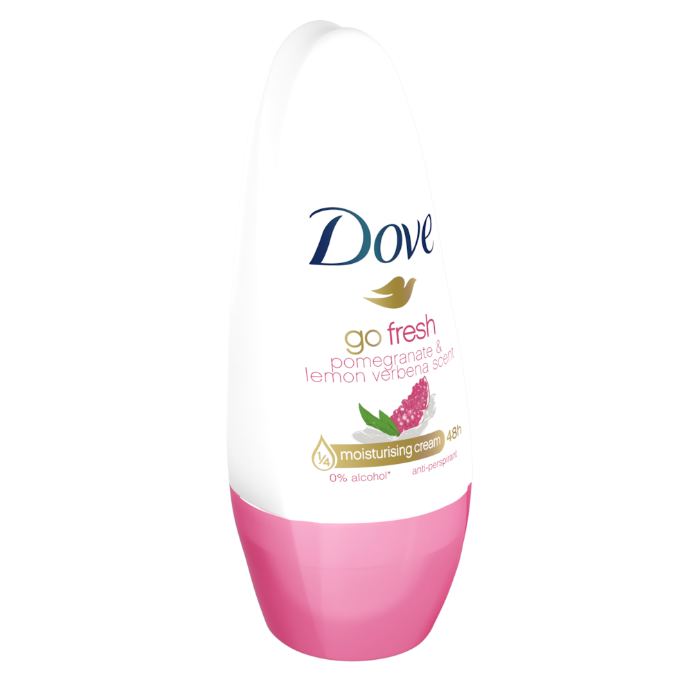 Dove Go Fresh Pomegranate & Lemon Verbena Deodorant. A deodorant with the fresh, natural scent of lemon verbena and pomegranate. It leaves underarms smooth thanks to the abundance of nutrients in a 1/4 moisturizing cream and 0% alcohol, which is non-irritating. This deodorant is available in a 40ml roll-on at leading official stores in your city.