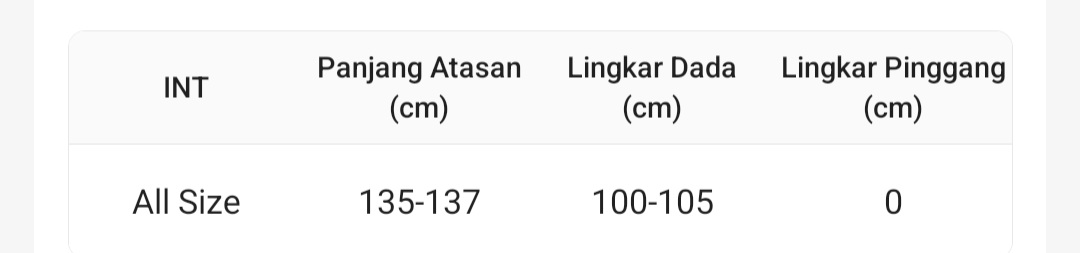 All Sizes: shirt length 135-137 cm, chest circumference 100-105 cm