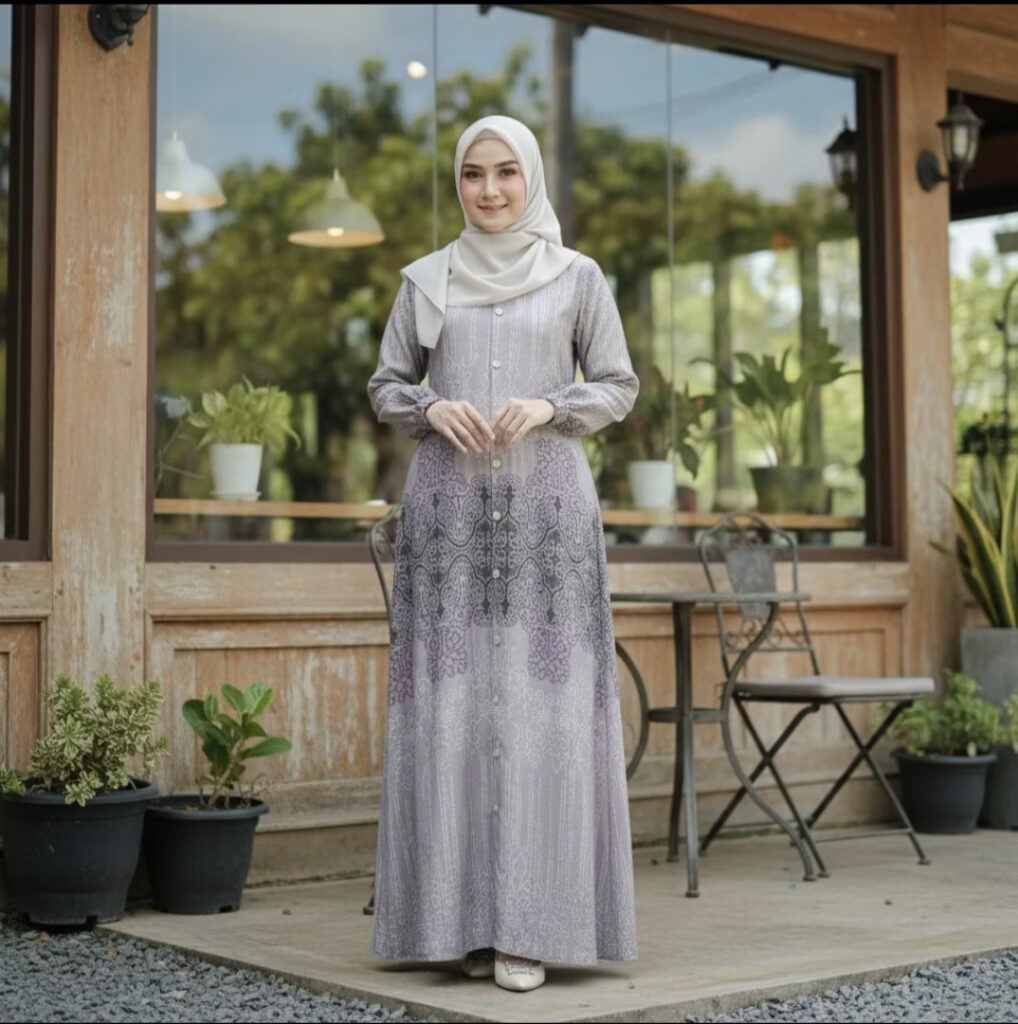 There are pearl buttons that add to the luxury of the dress and of course it is breastfeeding friendly, and the sleeves have button cuffs that are comfortable for ablution.