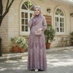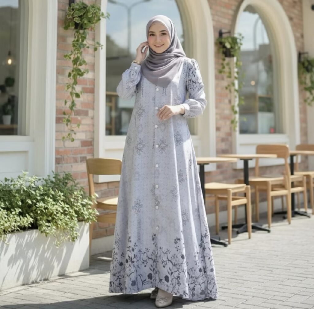 There are full live pearl buttons from top to bottom, adding to the luxury of the dress and of course it is breastfeeding friendly, and the sleeves have comfortable button cuffs for ablution.