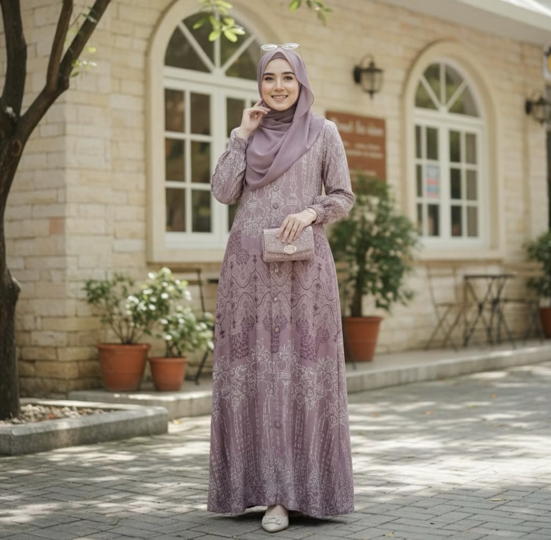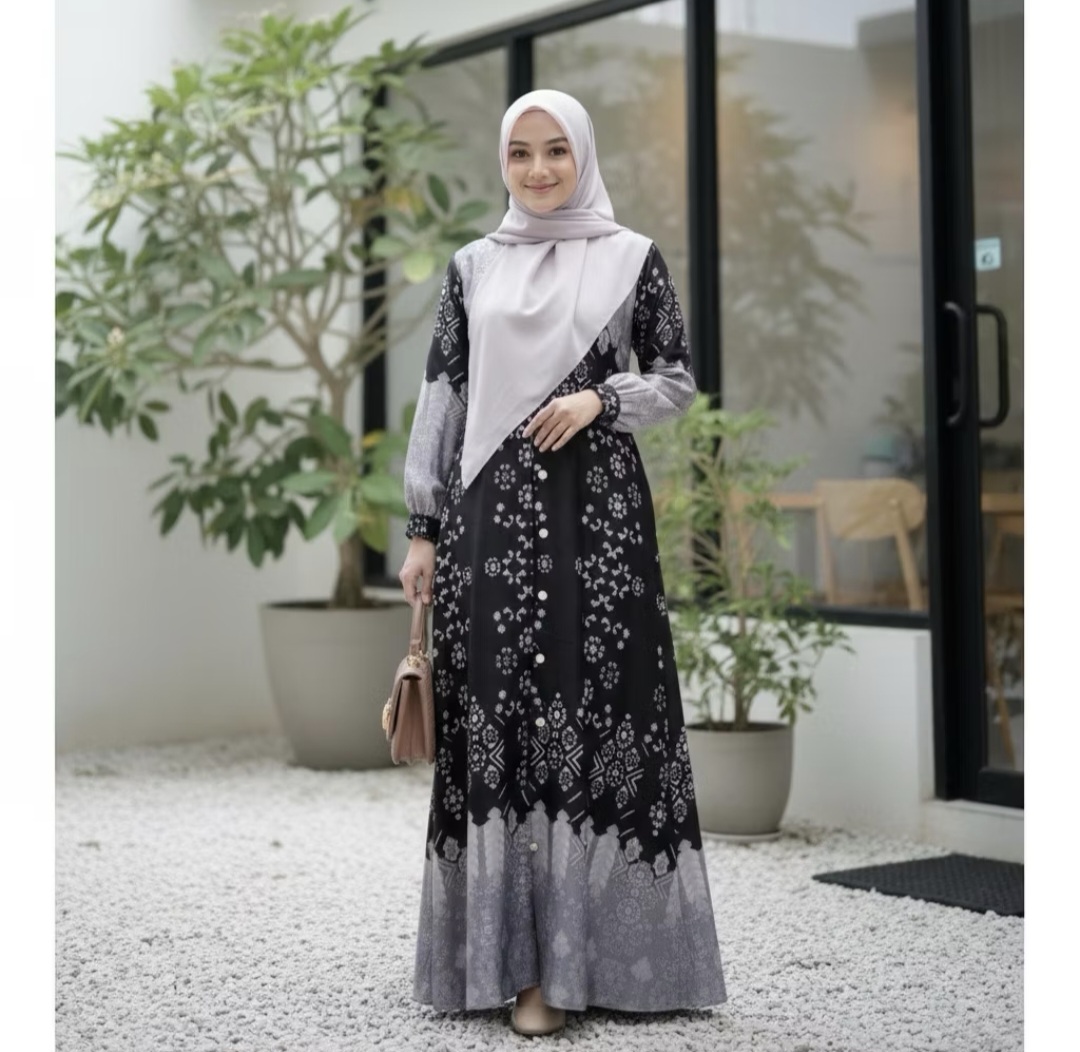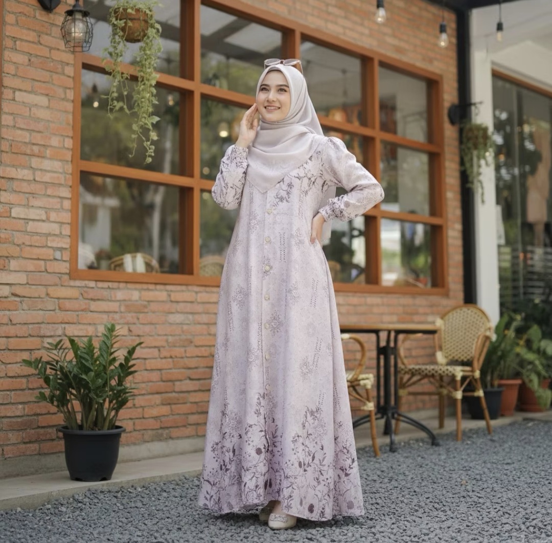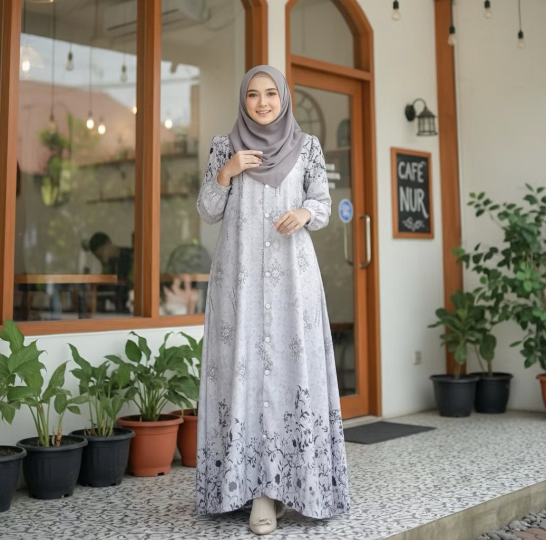 There are full live pearl buttons from top to bottom, adding to the luxury of the dress and of course it is breastfeeding friendly, and the sleeves have comfortable button cuffs for ablution.