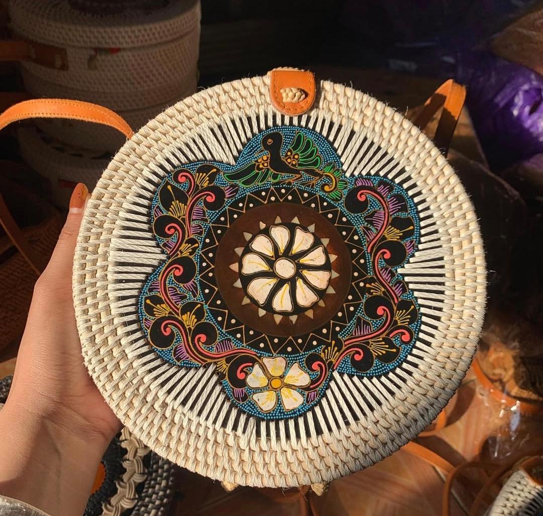 Handcrafted Bali Rattan Bags with ArtworkHandcrafted Bali Rattan Bags with Artwork