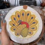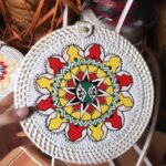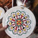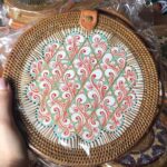 Add a touch of nature-inspired elegance to your outfit with this handcrafted round bag. Featuring a stunning arrangement of pressed leaves in shades, this piece combines artistry with functionality. The woven outer frame and leather strap create a rustic yet stylish look, perfect for casual outings, vacations, or special occasions.