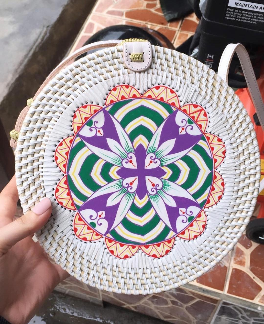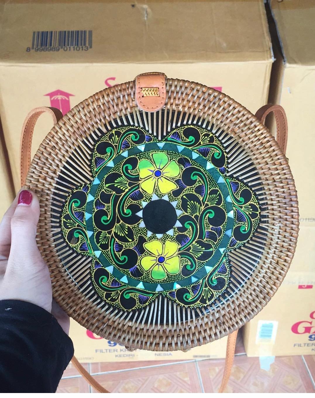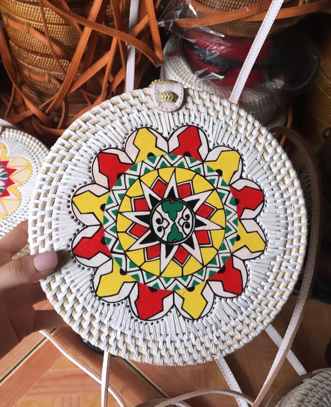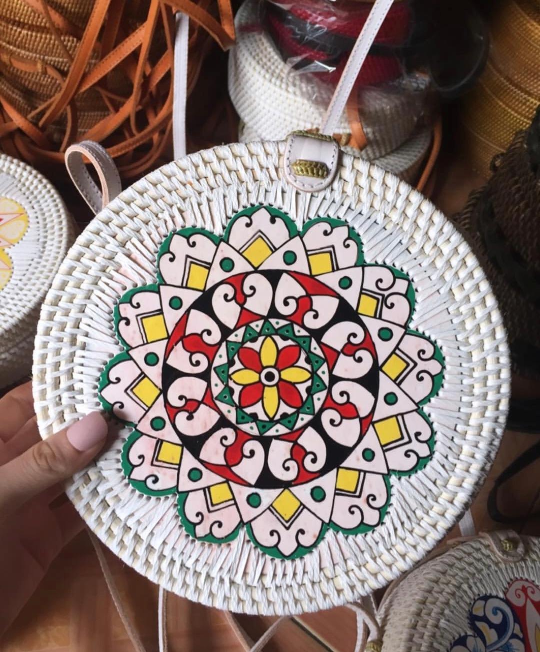 Add a touch of nature-inspired elegance to your outfit with this handcrafted round bag. Featuring a stunning arrangement of pressed leaves in shades, this piece combines artistry with functionality. The woven outer frame and leather strap create a rustic yet stylish look, perfect for casual outings, vacations, or special occasions.