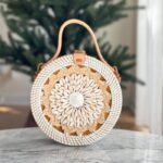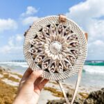 Add a touch of nature-inspired elegance to your outfit with this handcrafted round bag. Featuring a stunning arrangement of pressed leaves in shades, this piece combines artistry with functionality. The woven outer frame and leather strap create a rustic yet stylish look, perfect for casual outings, vacations, or special occasions.