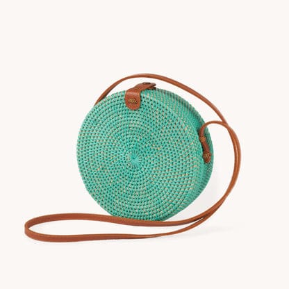Handmade Rattan Round Bag - Tosca & PurpleHandmade Rattan Round Bag – Tosca & Purple