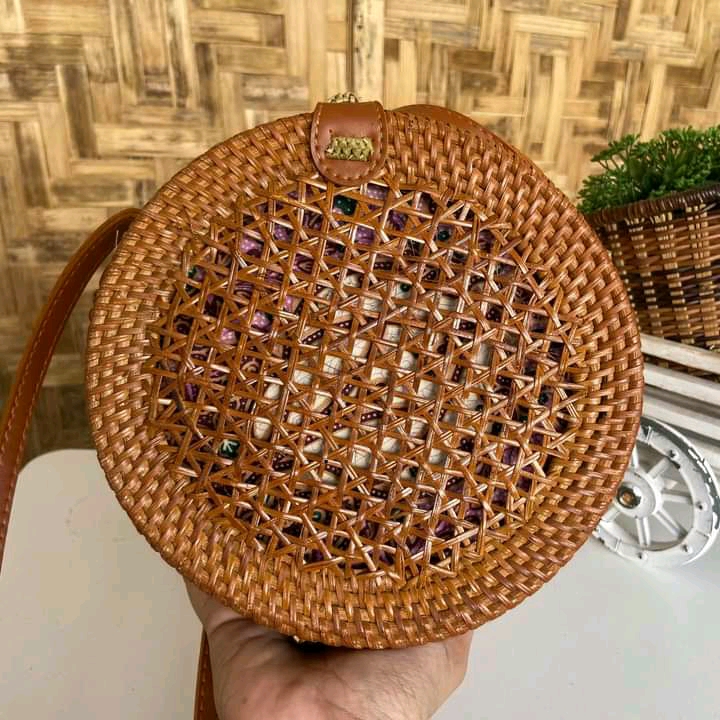 Handmade Rattan Round Bag with Nature LooksHandmade Rattan Round Bag with Nature Looks