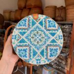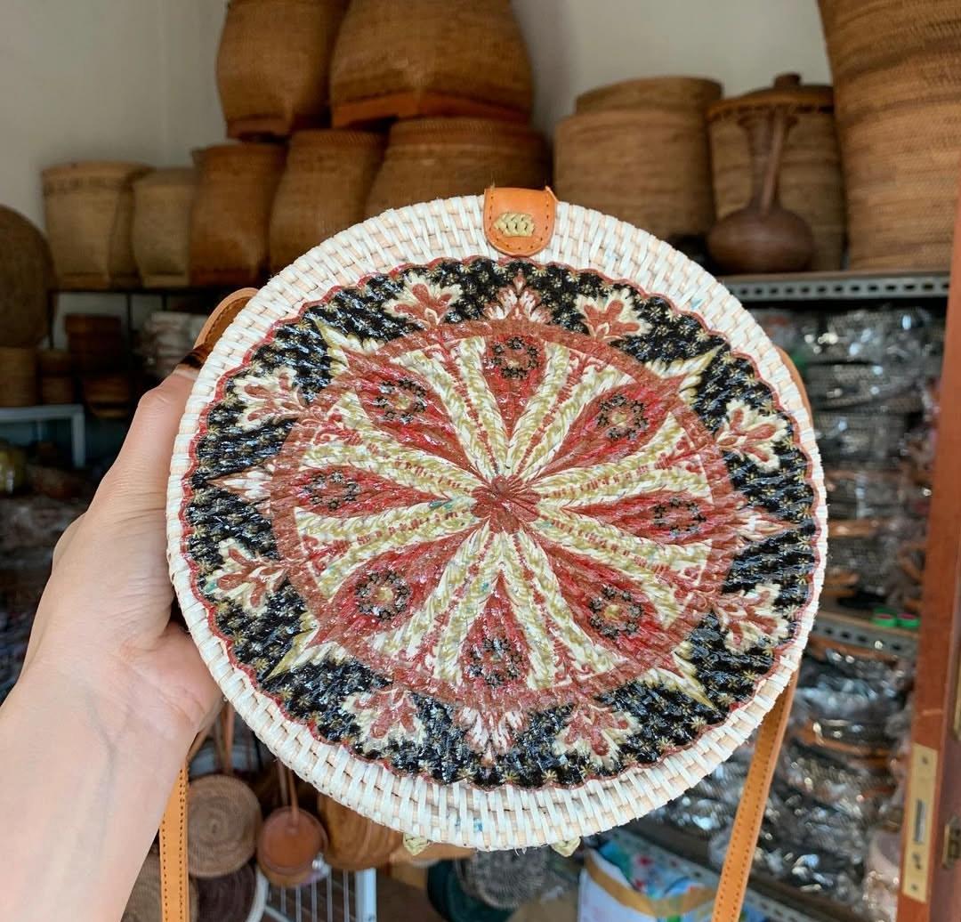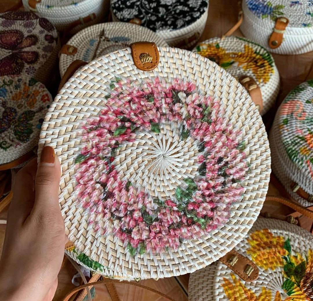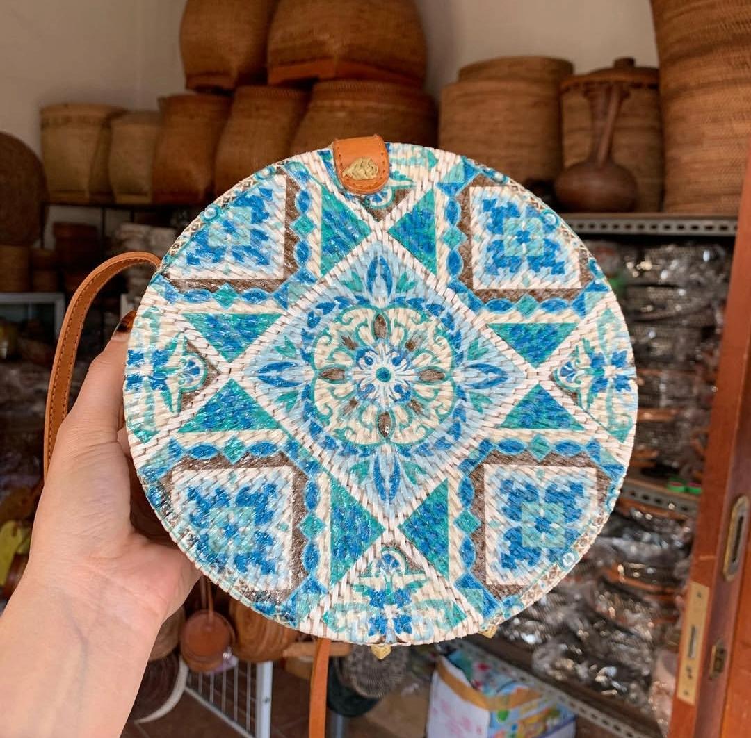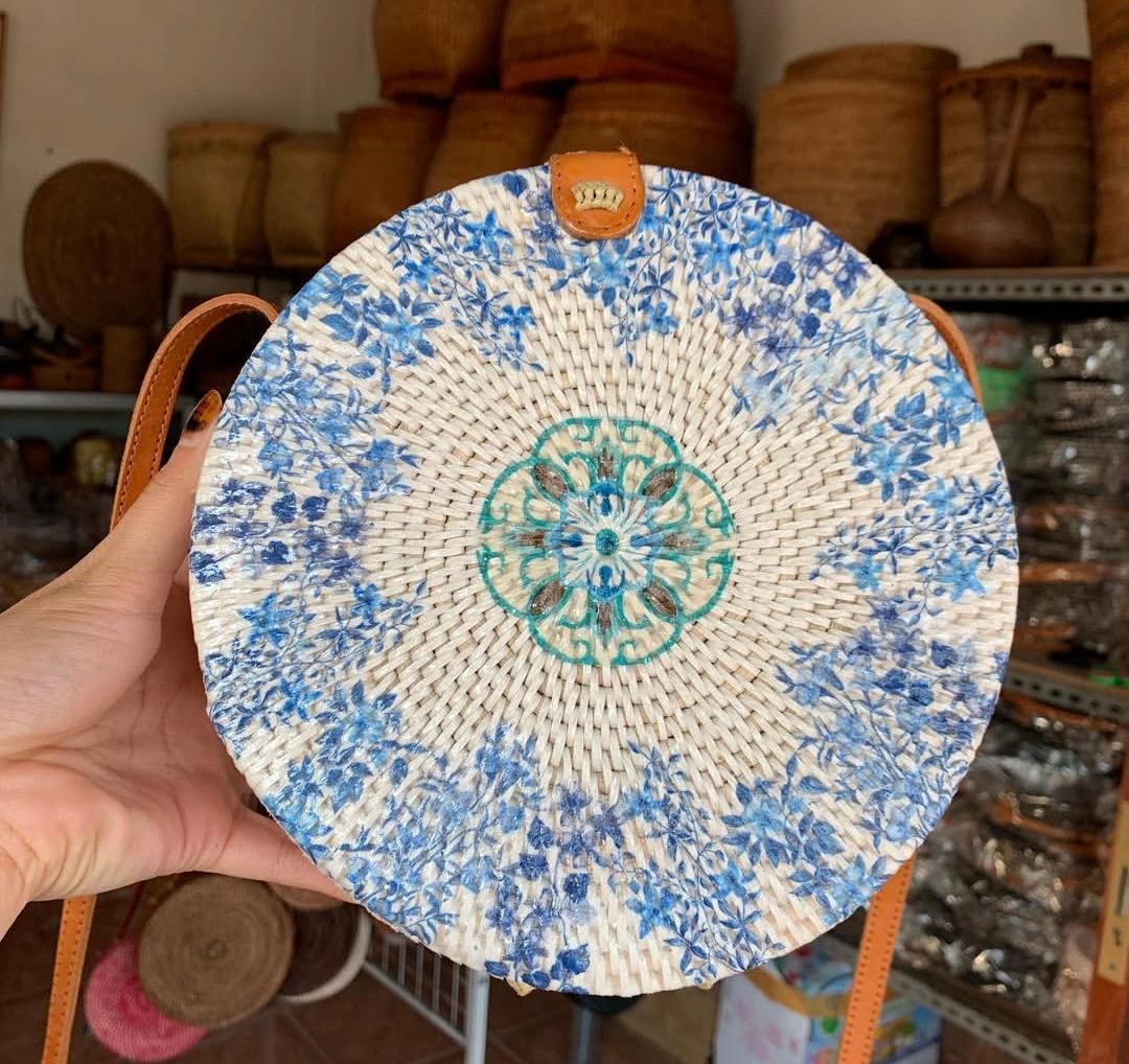 Handmade Rattan Round Bag with Printing DesignHandmade Rattan Round Bag with Printing Design