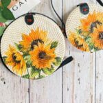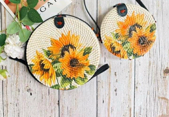 Handmade Rattan Round Bag with Printing DesignHandmade Rattan Round Bag with Printing Design