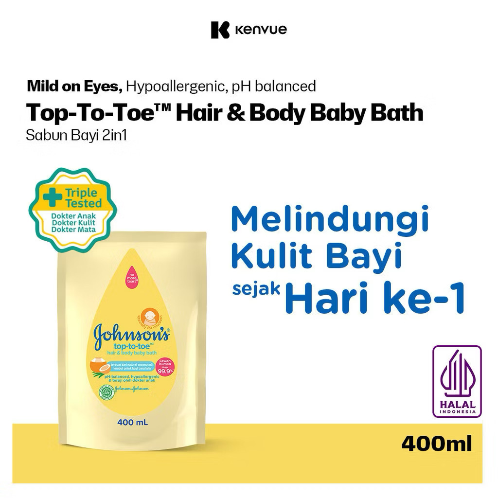 JOHNSON’S Top-to-Toe Hair & Body Baby Bath – 2in1 Baby Soap Refill 400ml