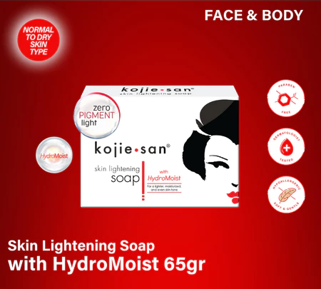 Facial cleansing soap and bath soap with the main ingredients of kojic acid that can brighten and evenen the skin tone, equipped with Zero Pigment Light and HydroMoist Technology that can moisturize the skin all day