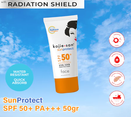 KOJIE SAN Sunprotect SPF 50+ PA++ Face 50g comes with Radicare content that makes it a protective layer for our skin from the dangers of sunlight that can damage the skin. This product is suitable for use by all skin types. With Radicare technology, this product provides strong protection against UV rays and minimizes damage from sun exposure. High SPF and PA+++ With a high-tech formula, KOJIE SAN Sunprotect SPF 50 PA++ Face provides maximum protection for your face when outdoor activities. Its soft cream is also easy to absorb into the pores of the face without leaving a sticky or oily taste. KOJIE SAN Sunprotect SPF 50+PA++Face products have been certified BPOM (NA40221700007) Registration Number as a safe product to use. This product also has a shelf life for up to 36 months. KOJIESAN Sunprotect SPF 5O PA++ Face will be your loyal friend during outdoor activities or on long trips. Get it immediately for the maximum protection experience for your face, Kojic Lovers!