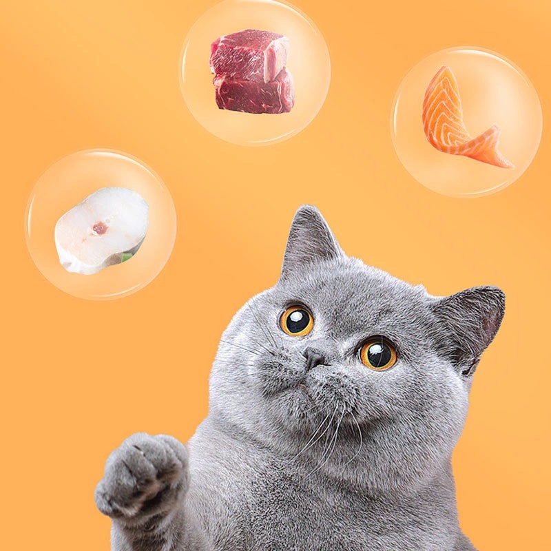 Ingredients: tuna/chicken/cod of choice, water, olive oil, taurine, minerals, vitamins, DHA, etc.