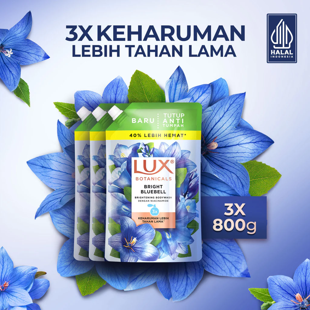 Lux Bright Bluebell liquid shower gel brightens skin with the fragrance of Bluebell flowers, the fragrance lasts for 12 hours