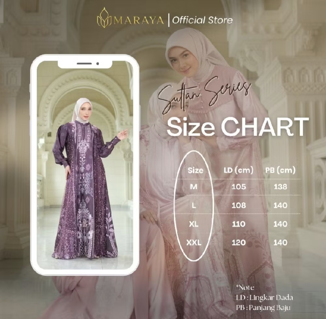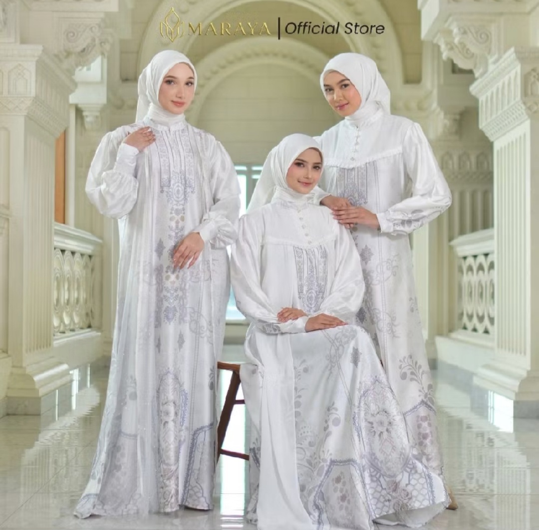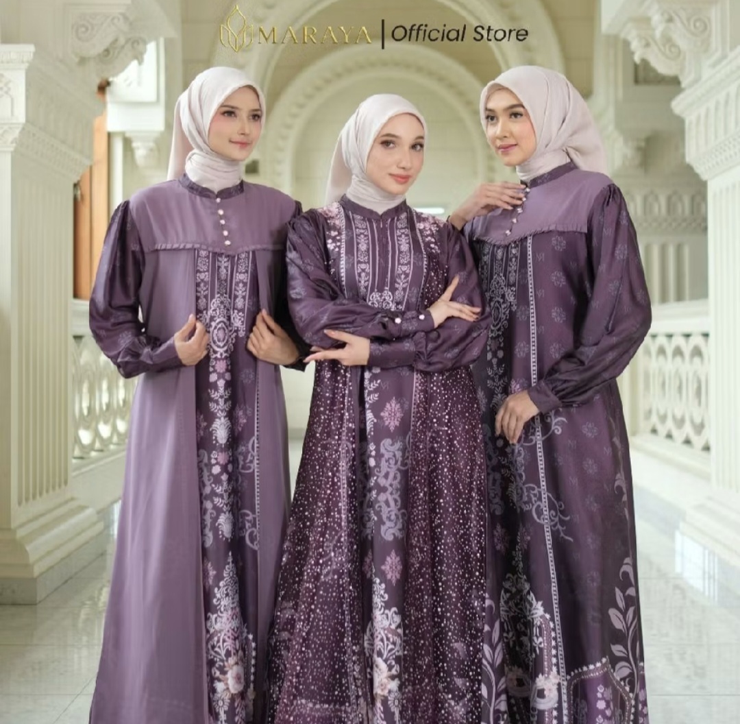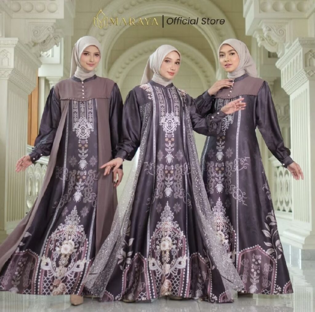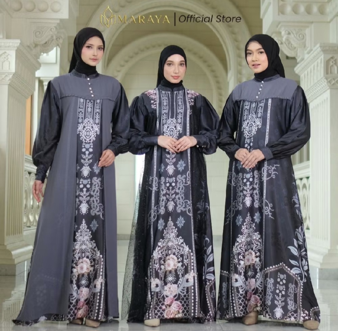 This elegant gamis is made from Silk Armany mixed with Tile Glitter, offering a luxurious look and a perfect fit. Comfortable and opaque, it’s perfect for parties, weddings, and Eid al-Fitr.