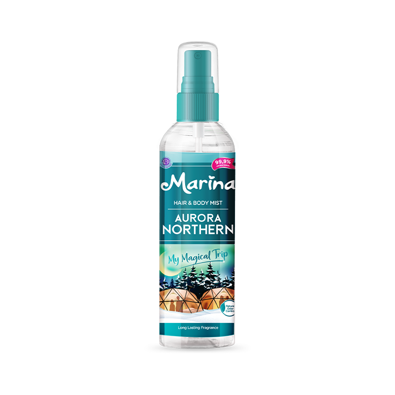 Looking at the Northern Aurora, the beautiful light that moves in the sky in the middle of the cold of the Pole gives you a Magic Trip experience! You can also adventure to enjoy Aurora by feeling the fragrance of a long-lasting Marina Hair & Body Mist with 99.9% Anti Bacterial*
