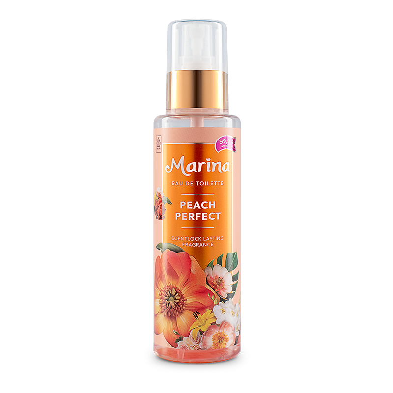 Ready to spread your optimism positive energy? Marina Eau De Toilette Peach Perfect comes with elegant, fresh and feminine luxury fruit and flowers with ScentLock Formula to keep the luxurious fragrance durable throughout the day, and features a 99.9% Antibacterial formula for protection from germs and bacteria. Do not leave stains on the cloth (cloth & hijab).