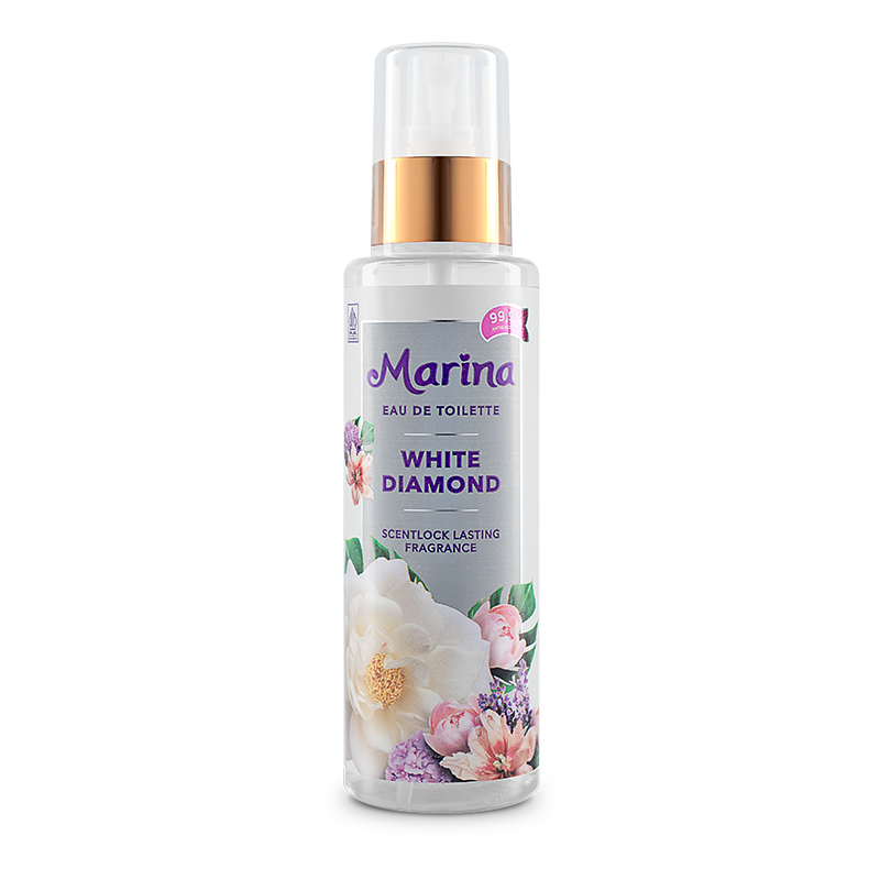 Ready to have a growth mindset and make great impact? Marina Eau De Toilette White Diamond comes with an elegant, sweet and feminine luxury floral fragrance with ScentLock Formula to keep the luxurious fragrance durable throughout the day, as well as features a 99.9% Antibacterial formula for protection from germs and bacteria. Do not leave stains on the cloth (cloth & hijab).