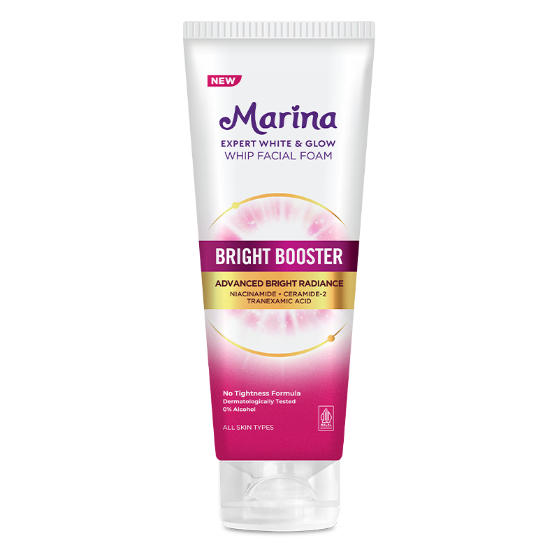 Whip Facial Foam with more creamy foam and soft, cleanses the face thoroughly from the rest of the makeup, dirt, and oil to the pore and still maintains the skin’s natural moisture. With Advanced Brightening Formula for bright skin shine, healthy blush, and glowing.