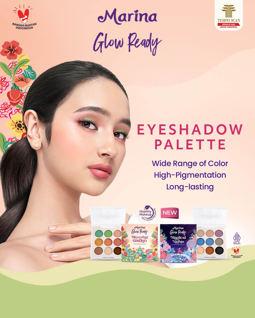 Palette Eyeshadow with a blend of 9 colors consisting of matte and shimmer with a smooth texture and easy to blend buttery. With a versatile color range of options can be used for natural, playful, to glamous.