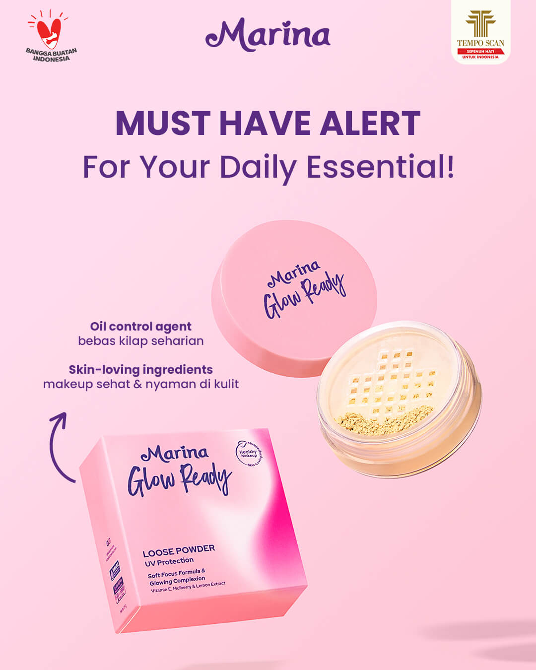 Loose powder that makes the face smooth shiny and glowing.