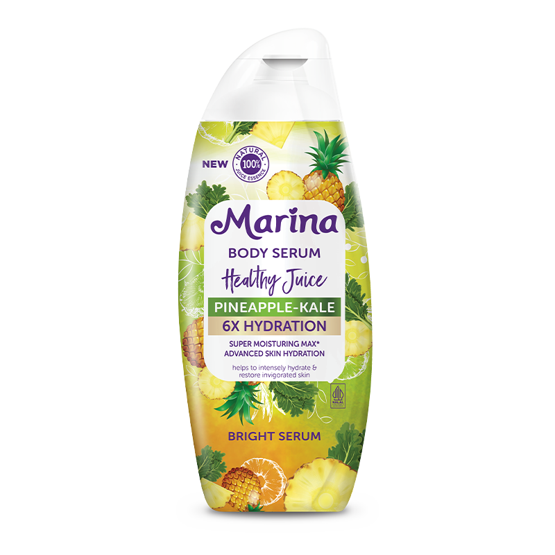 Healthy Juice Body Serum Pineapple Kale for intensively hydrated and fresh skin, with ADVANCED SKIN HYDRATION Special Formula Bright serum with 6X HYDRATION* Alloy of the active ingredient SUPER MOISTURING MAX*.