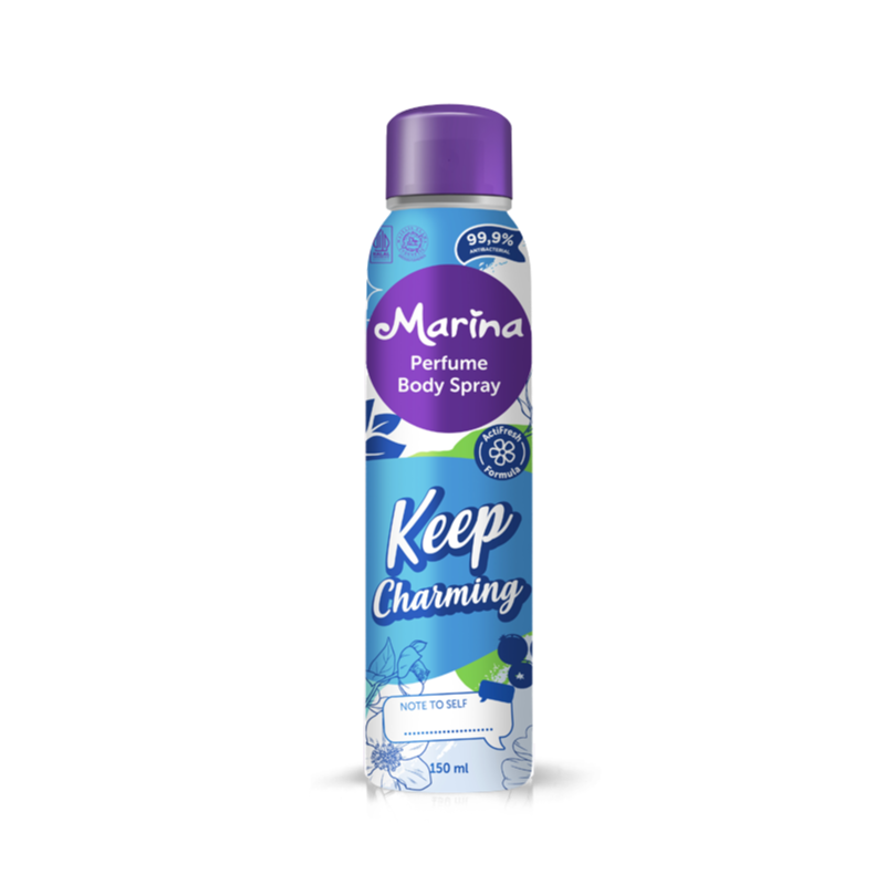 Marina Perfume Body Spray with a 99.9% Anti-Babacterial formula for protection from germs and bacteria* also ActiveFresh formula with a cooling sensation throughout the day to dispel the smell of sweat and the sun. Do not leave stains on the cloth (cloth & hijab).