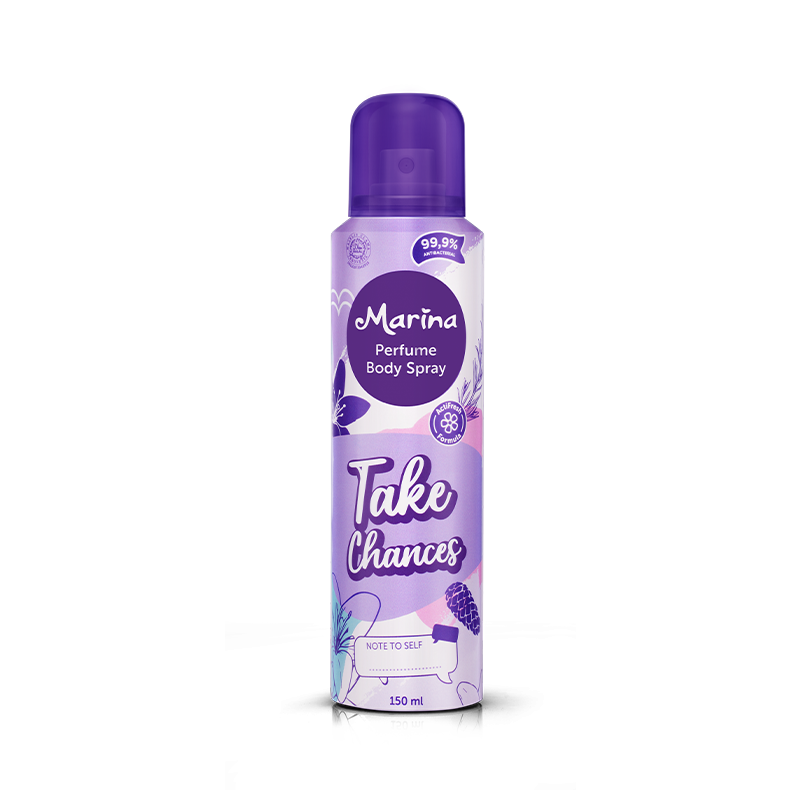 Marina Perfume Body Spray with a 99.9% Anti-Babacterial formula for protection from germs and bacteria* also ActiveFresh formula with a cooling sensation throughout the day to dispel the smell of sweat and the sun. Do not leave stains on the cloth (cloth & hijab).