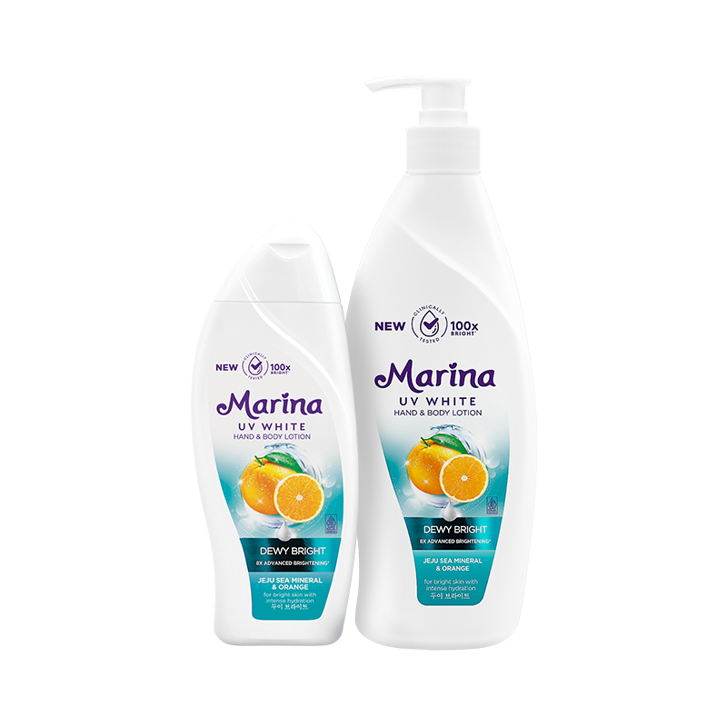 Hand & body lotion with 8x Advanced Brightening Formula from Biowhitening Complex alloy Jeju se mineral water, orange, Niacinamide, Vit.B3 & Vit.E. Clinical tested 100x enlightening. Jeju Sea Mineral Water & Orange helps the skin appear brighter evenly and healthy sparkling, Niacinamide & Vitamin E to nourish and soften the skin. Triple UV Protection that protects the skin from UVA & UVB.