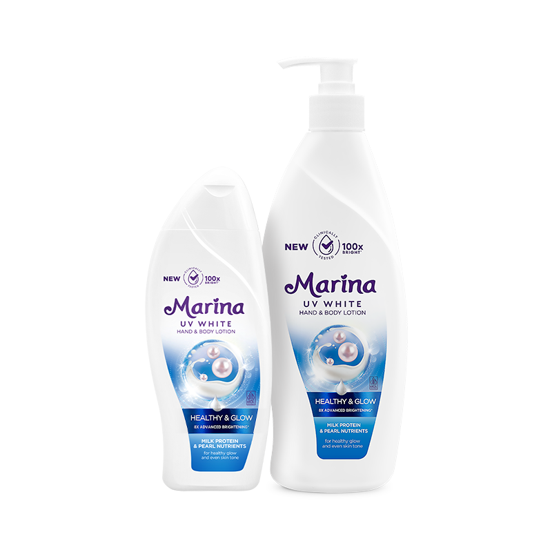 Hand & body lotion with 8x Advanced Brightening Formula from Biowhitening Complex Alloy Milk Protein, Pearl Nutrient, Niacinamide (Vitamin B3) & Vitamin E, Sea Salt. Clinically tested 100x brightening, the mineral essence that emits skin light, Niacinamide & Vitamin E to nourish and soften the skin. Triple UV Protection that protects the skin from UVA & UVB.